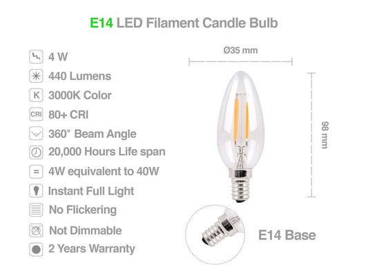 Metrix E14 LED 4W Filament 440 Lumen Kerze Warmweiß (10 Stück)