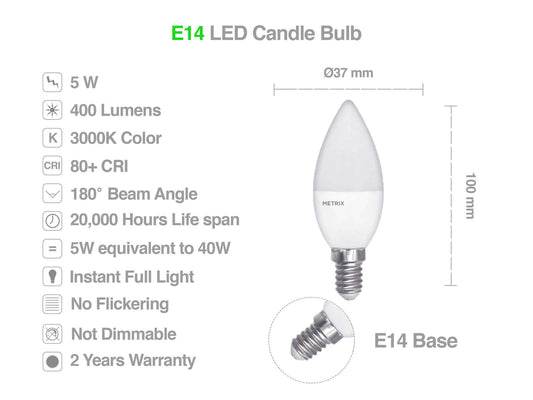 Metrix LED Lampe E14 5W 400 Lumen Kerze Warmweiß (10 Stück)