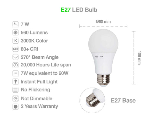 Metrix LED E27 7W Glühbirne 560 Lumen Warmweiß