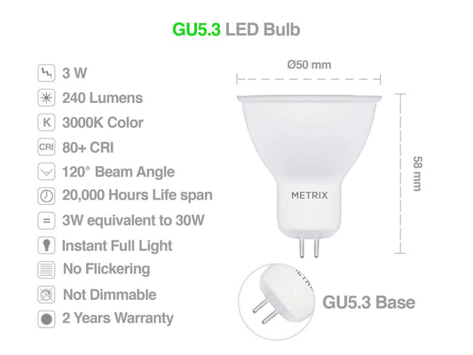 Metrix GU5.3 3W LED 240 Lumen 120 Grad Abstrahlwinkel Reflektorlampe